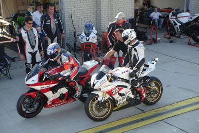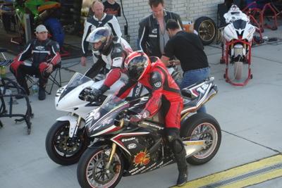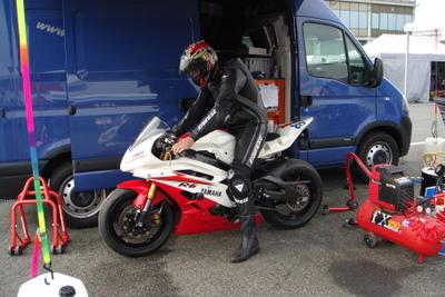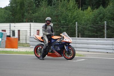 | Gleich nach dem Frühstück am Sonntag Morgen drängte Helmut darauf das sich Hannes statt ihm für das fünfzehn Rundenrennen anmelden sollte. Da dieser aber seit seinem Sturz noch mit Schmerzen in seiner Schulter kämpft und er seit vorigem Jahr nur wenige Trainingsrunden absolvieren konnte, verweigerte er zunächst. Nach mehrmaligem nachhacken lies er sich aber doch breitschlagen und stürzte sich ins Getümmel. Obwohl Hannes noch nie mit Bridgestone Reifen unterwegs war, und nur wenig mit Helmuts Motorrad vertraut war, konnte er mit einer 2:12:9 ordentlich im Rennen mitkämpfen. Völlig erledigt, und froh das Rennen überstanden zu haben, übergab er die R1 unversehrt an Helmut zurück. |  |