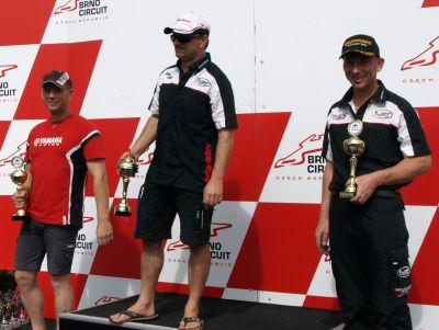 |  | Da sich Bertl und Soli noch immer nicht über die richtigen Reifen im klaren sind, begannen beide am Samstagmorgen mit weiteren Testfahrten. Soli probierte als Hinterreifen den neuen Michelin Power ONE und Bertl stürzte sich mit einem Satz Bridgestone ins Zeittraining. Bertl beklagte ein deutlich trägeres Einlenkverhalten der neuen Bridgestone Slicks und wechselte nach einem Turn wieder zu den ihm vertrauten Michelins. Soli konnte die Eigenschaften seines neuen Hinterreifens nicht so schnell einschätzen und entschied sich auch das bevorstehende Langstreckenrennen mit dem Power ONE zu fahren. Das Rennen begann um 17:15 und ging über die bei GH-Moto übliche Distanz von 2,5 Stunden. Dieses mal kam das Saftycar gleich zwei mal zum Einsatz, wodurch einiges an Spannung ins Rennen gebracht wurde, denn einige gewannen und einige verloren in dieser Phase wichtige Plätze. Das Team Limited erreichte den dritten Platz und stand somit zum ersten mal auf dem Siegespodest, und auch das Team Open holte mit Platz zwölf wieder einige Punkte. |
